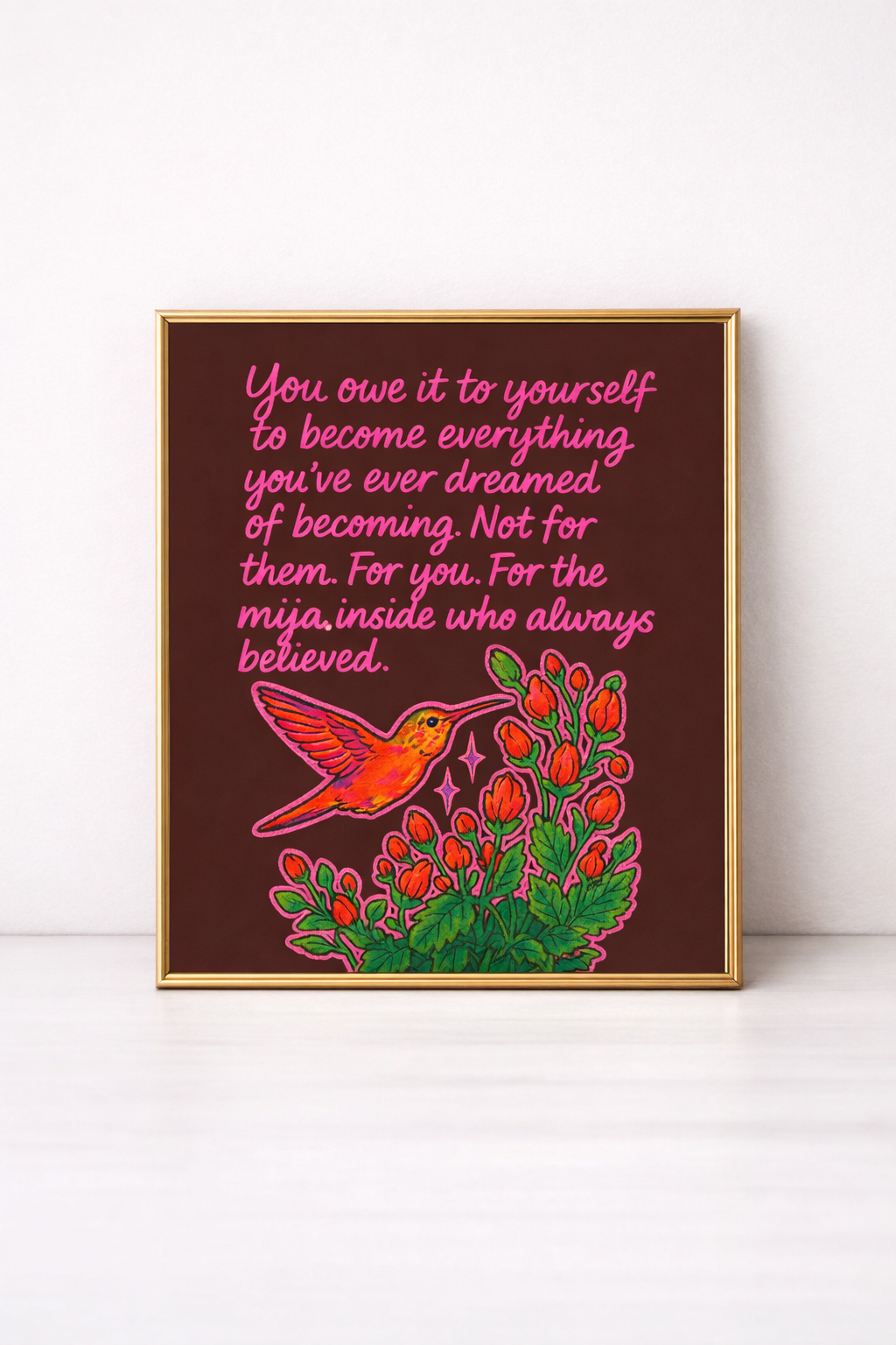 Bring a little Hey Mijita magic into your space. Printed on thick 14 pt matte cardstock, this poster is the perfect way to keep your favorite HM inspirational posts right where you can see them. Add it to your office, your casita, your vanity corner… anywhere you need a soft reminder to shine.